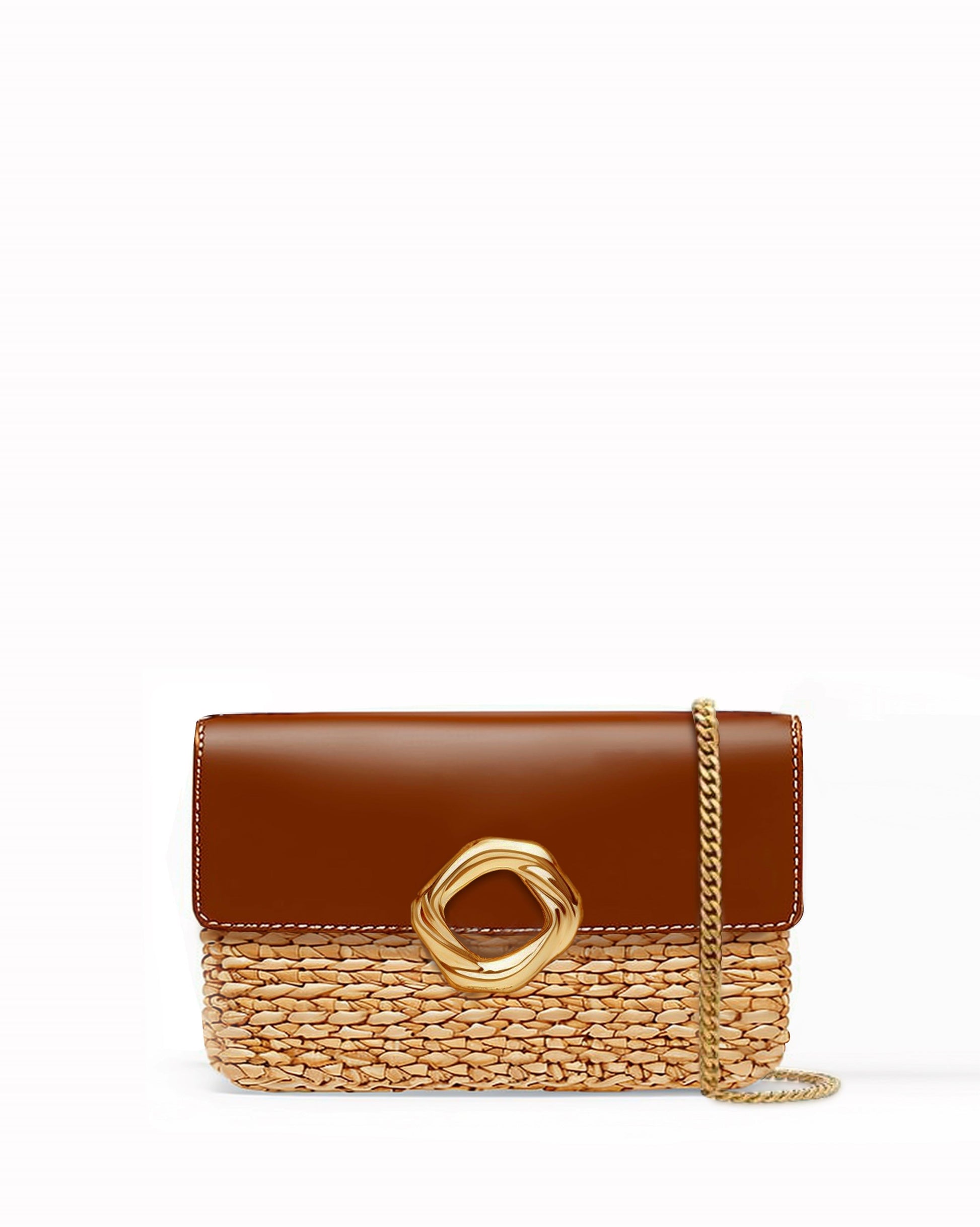 Raffia Woven Crossbody Bag - Brown