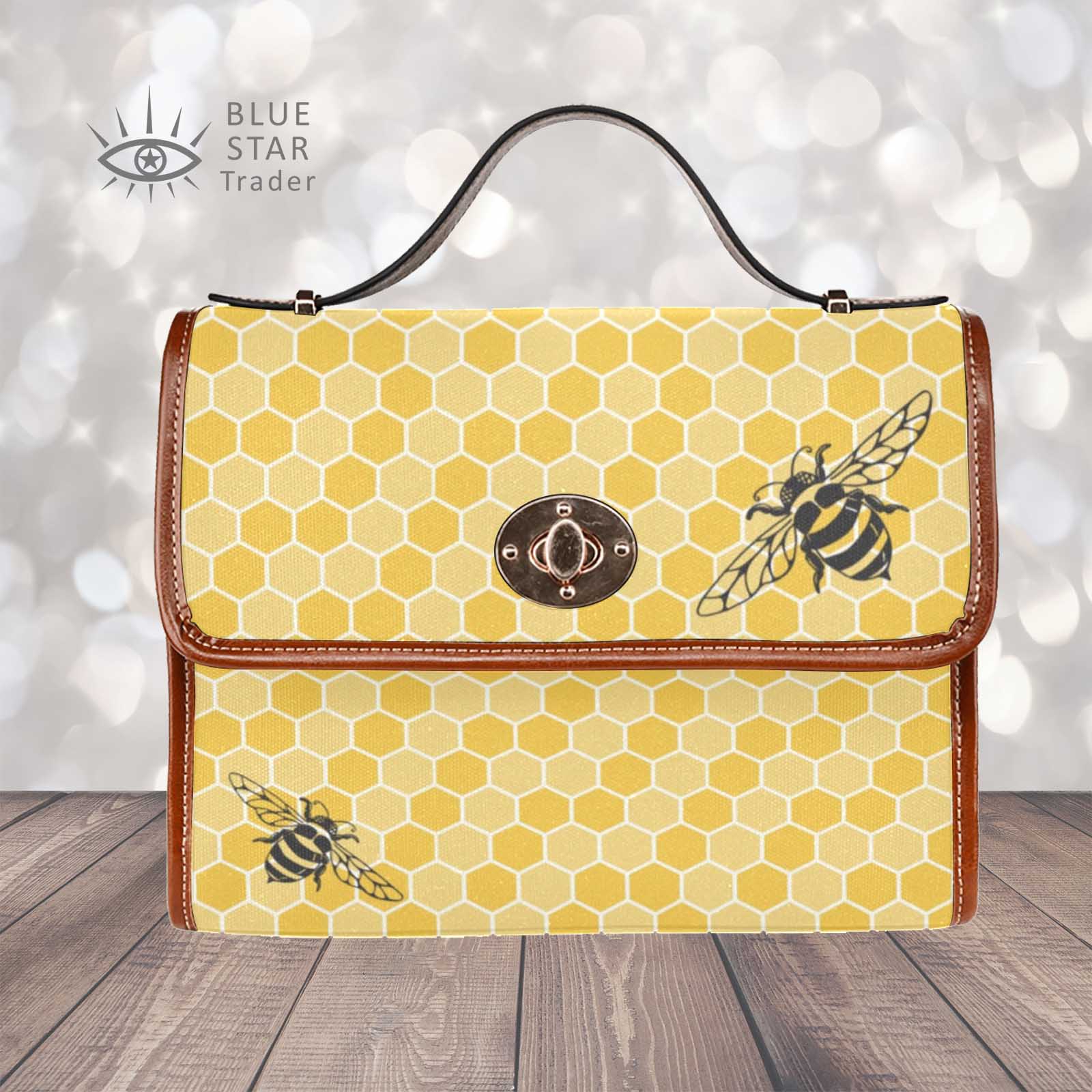 Retro Yellow Honey Bee Purse Handbag, Canvas Satchel Cross Body Bag