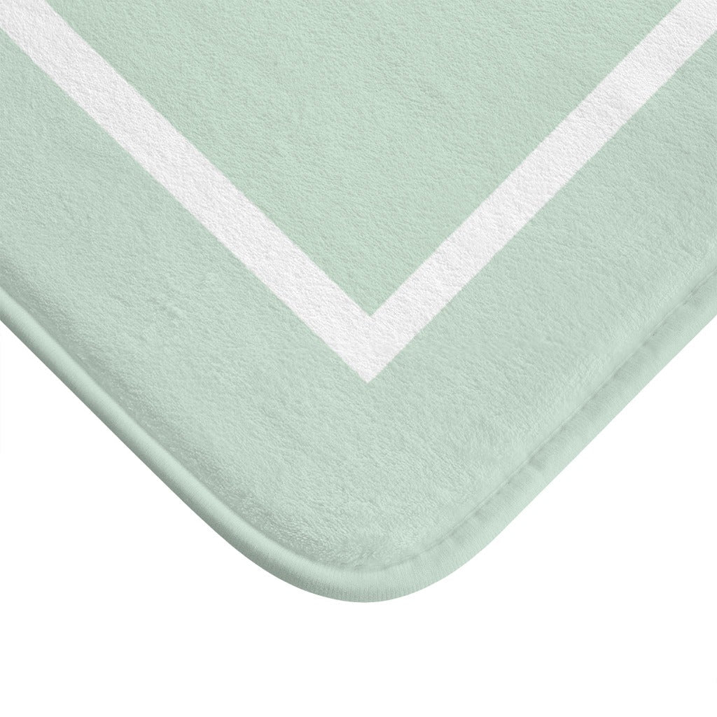 Ultrasoft Plush Sage Green Bath Mat With White Rectangle