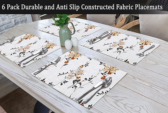 - Premium Material: Placemats Set of 6 is made with Top Quality 100% Cotton Duck Weave Fabric. Fabric is Soft, Wrinkle and Shrink-Resistant.