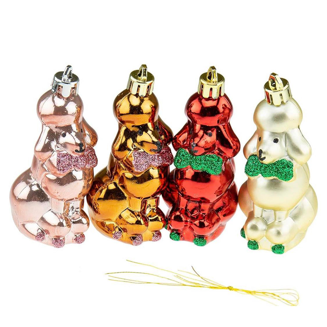 Poodle Dog Christmas Tree Ornaments 3" Tall - 4 Pack