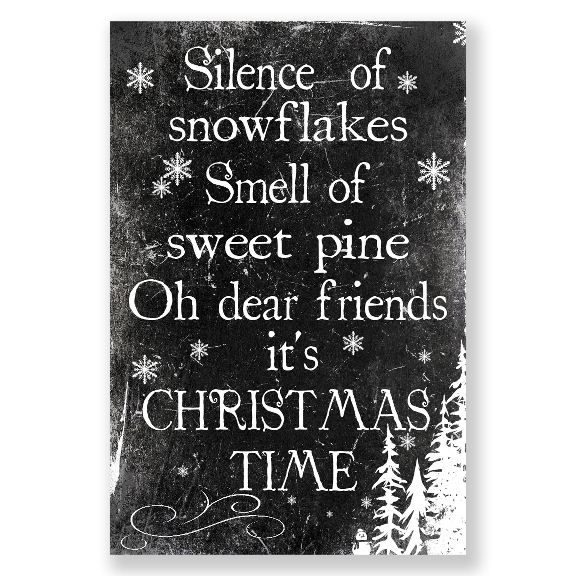 Silence of Snowflakes smell of sweet pine! You can just about feel the snowflakes land and smell the evergreens. Beautiful words printed with snowflakes, trees and if you look very close, a little snowman.