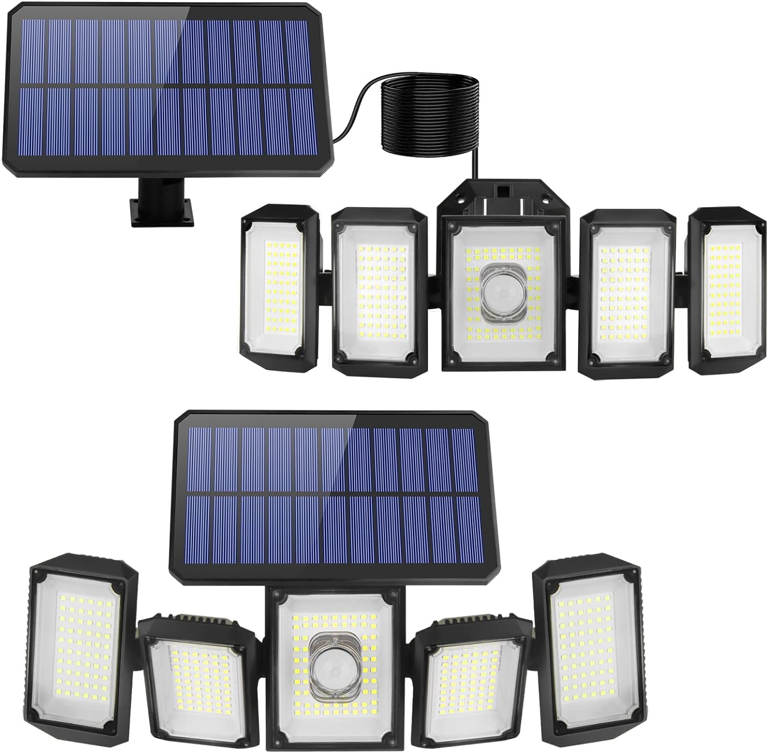 Innovative 5 Lighting Heads Design: our solar wall lamps is equipped with 5 rotating lighting heads and pivoting solar panels,it can move up and down, left and right, easily adjust the lamp cap,solar panel and motion sensor to any angles as your requirement,up to 360° wide lighting angle,bring you a fantastic lighting experience.