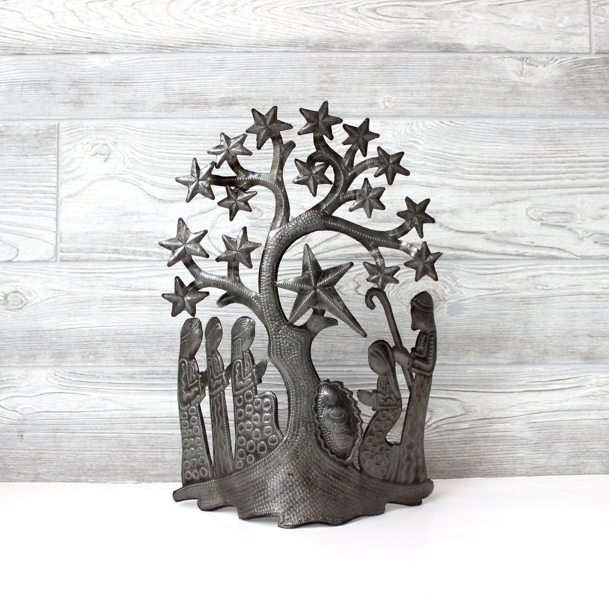 This beautiful metal nativity was created by Claudy, a metal artisan in Haiti, who has been making unique metal art for many years. Each purchase not only provides FMSC meals to children around the world, but also supports Claudy and his family.