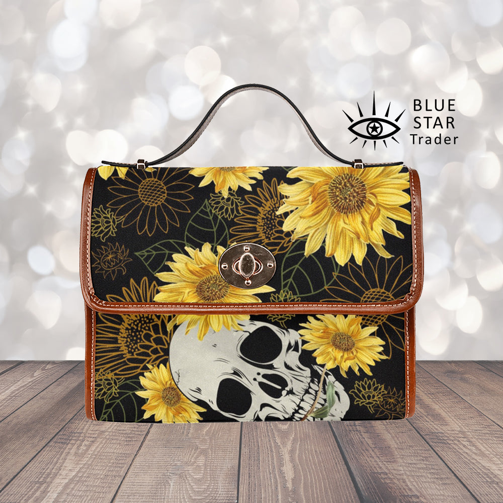 Sunflowers and Skulls Canvas Satchel bag, Cute womens cross body purse