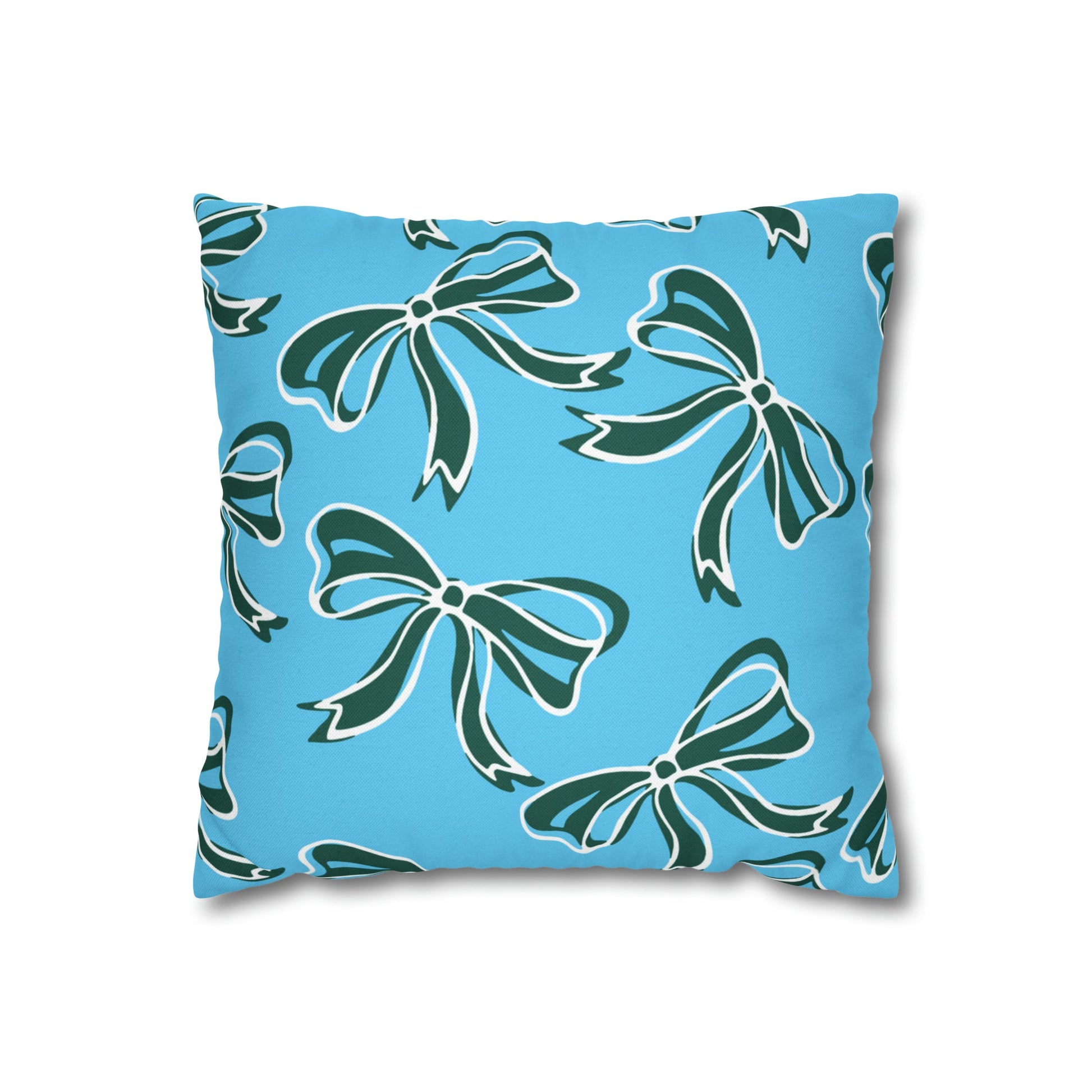 Trendy Bow College Pillow Cover - Dorm Pillow, Graduation Gift, Bed Party Gift, Acceptance Gift, College Gift, Tulane,Roll Wave,Blue & Green