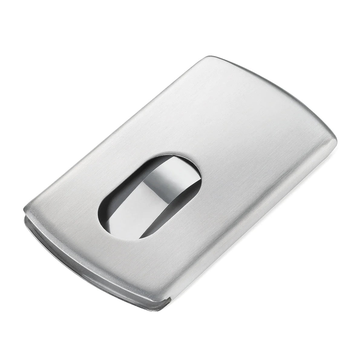 Troika Slide Business Card Case feels like it's made out of one smooth brushed stainless steel shape. A classic design, this Troika business card case is spring loaded and makes dispensing business cards with a slight push of the thumb fun. One way to make a meeting memorable is to start with a business card case that makes an impression.