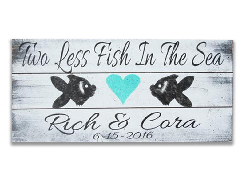 Two Less Fish In The Sea Pallet Sign Personalized Wedding Sign