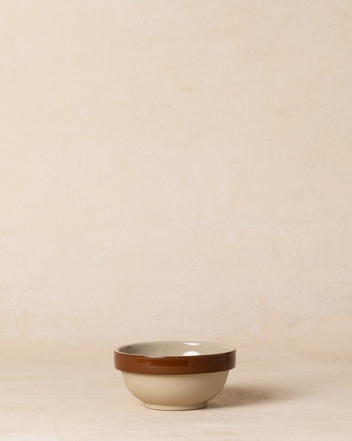This one-of-a-kind Vintage French Glazed Bowl is entirely handcrafted. With a sandstone-like finish on the side of the bowl and a deliberately smooth, rich glaze on the rim and inside of the bowl, the contrast in texture and color give it depth. The feminine bowl shapes lend a timeless feel to any space, while its finishing touches create unique moments of interest.