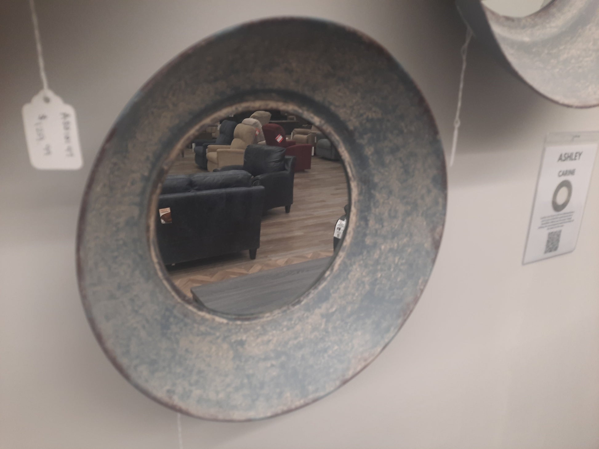 - if youre all over distressed decor, youre sure to find the carine round accent mirror beautifully reflects your fine taste