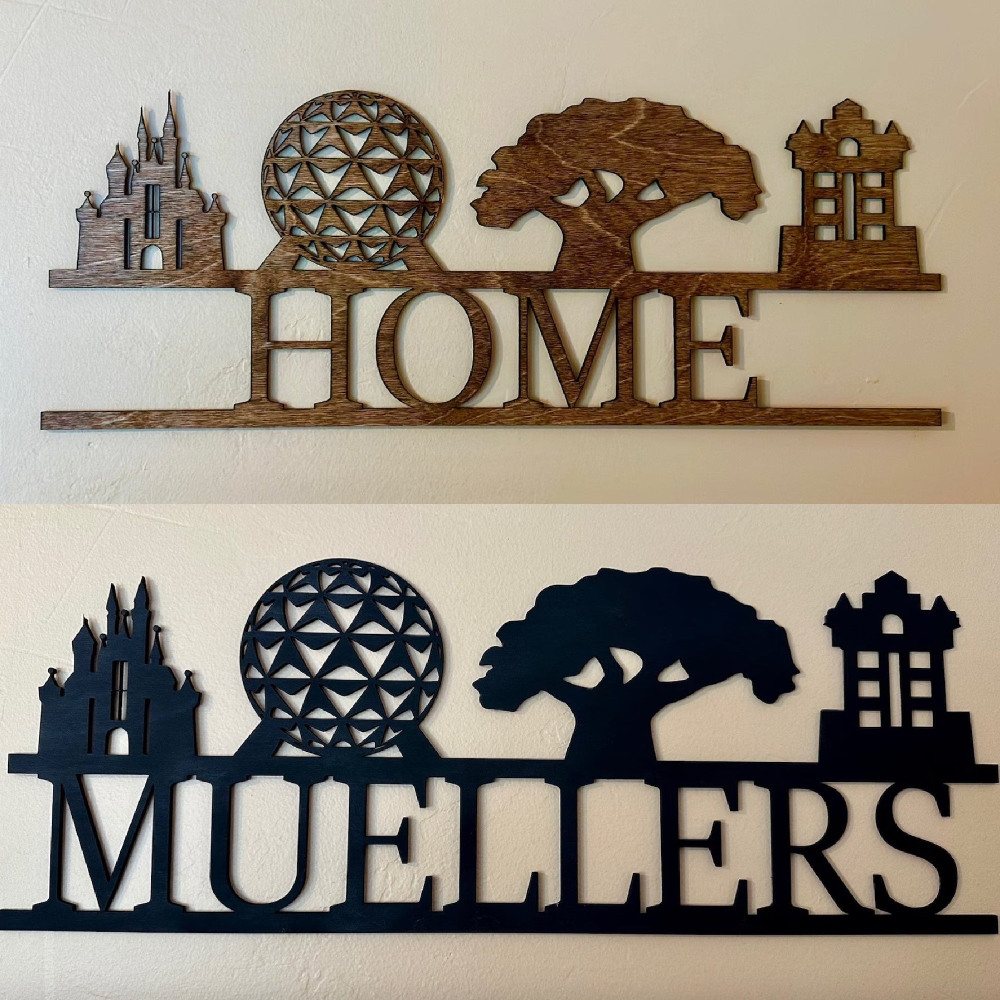 Commemorate past family vacations with our personalized WDW Park Icons decor! Laser cut from baltic birch wood, this crafted piece measures 18 inches across and 7 inches high, and mounts easily with a single finishing nail. Makes a great gift for that Disney family you know! FREE shipping (US only sales).