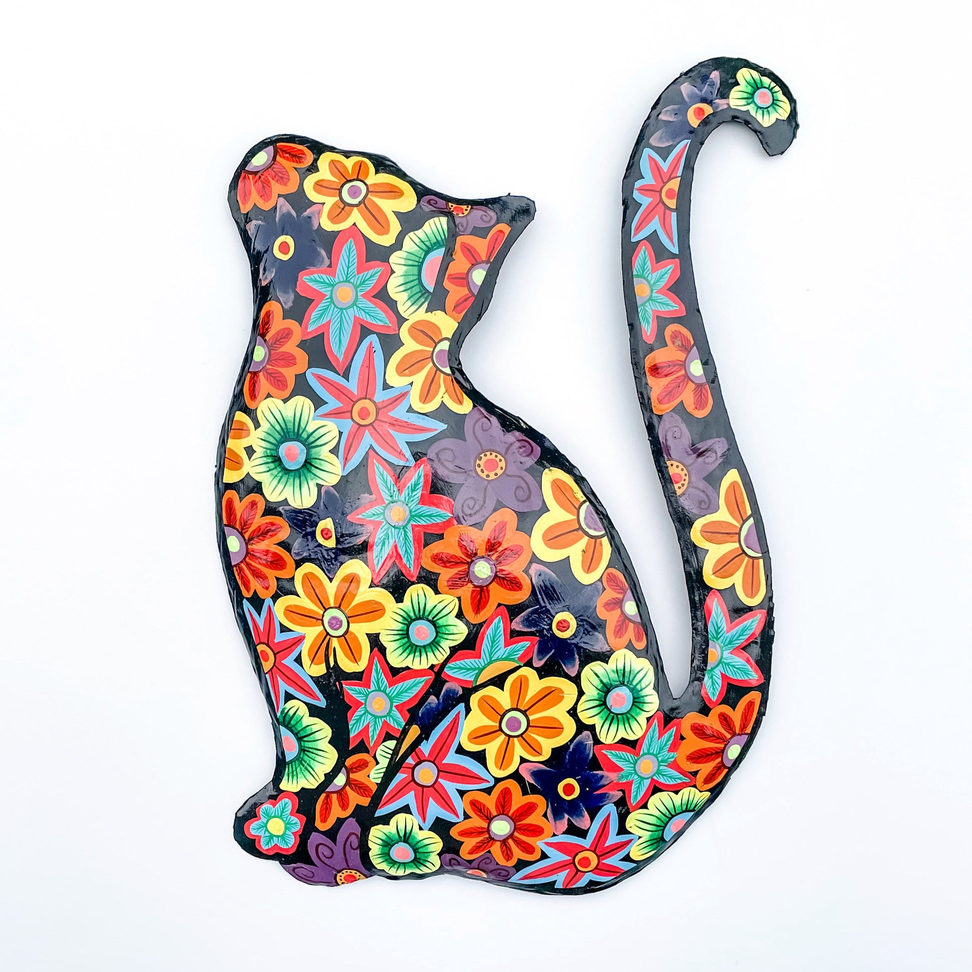Fill your room with color with this beautiful and vibrant work of art. It adds a pop of color to just about any wall and is perfect for any environment. Gift this handcrafted piece to the cat lover in your life!