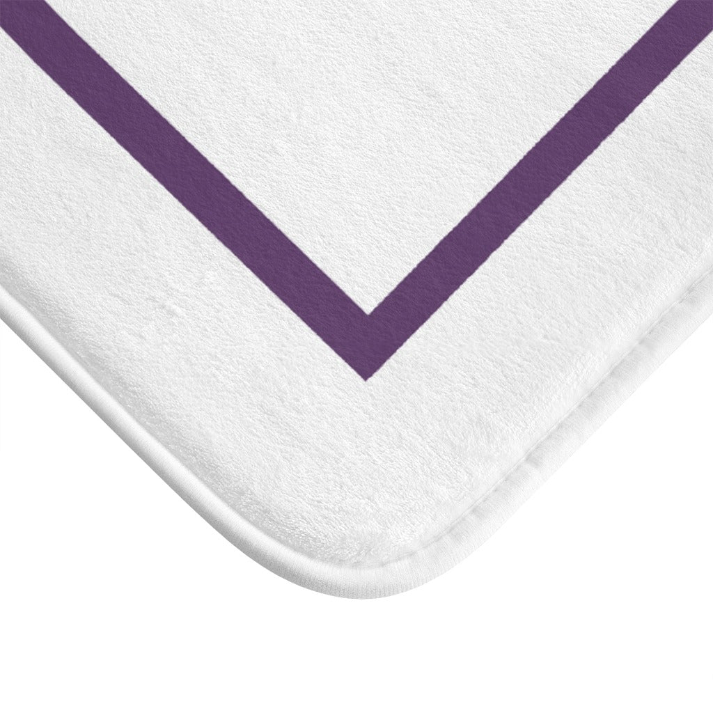 Ultrasoft Washable Absorbent White Bath Mat With Purple Rectangle