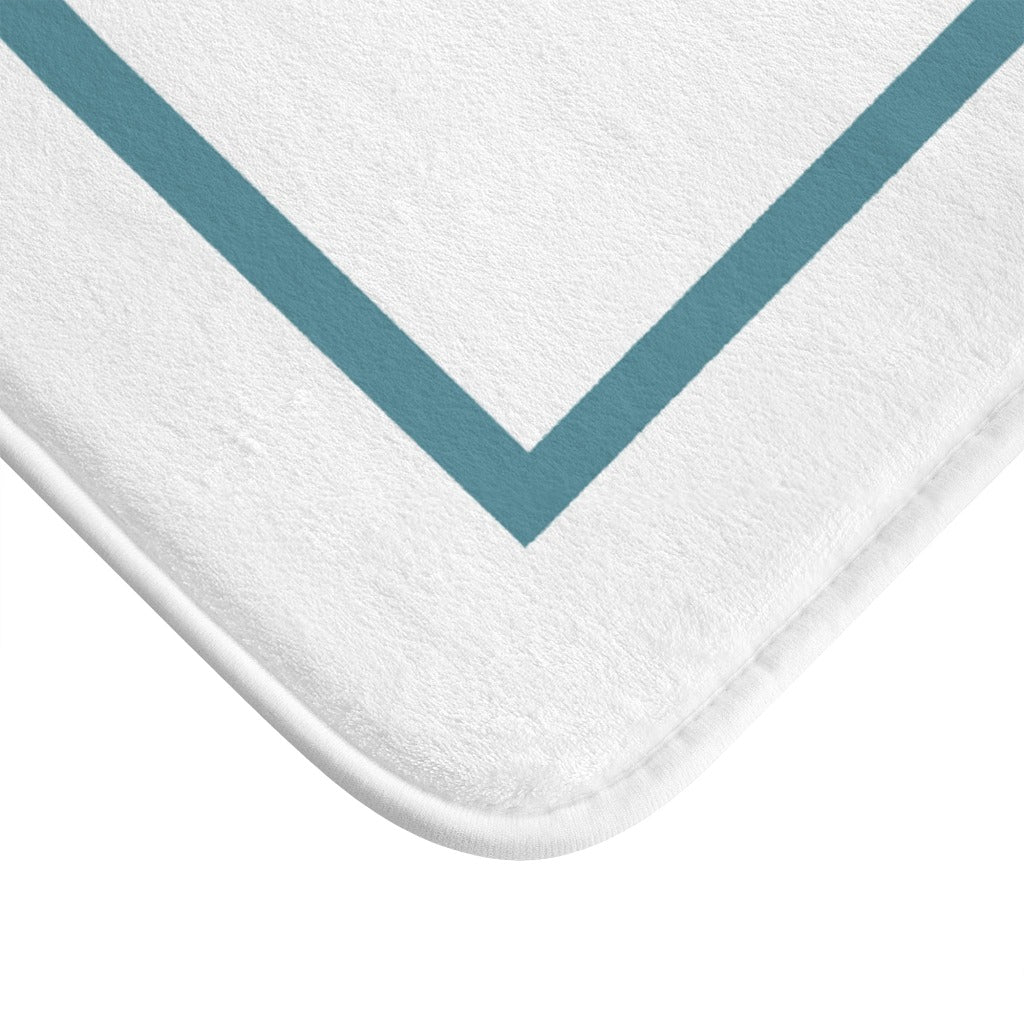 Ultrasoft Washable Absorbent White Bath Mat With Turquoise Rectangle