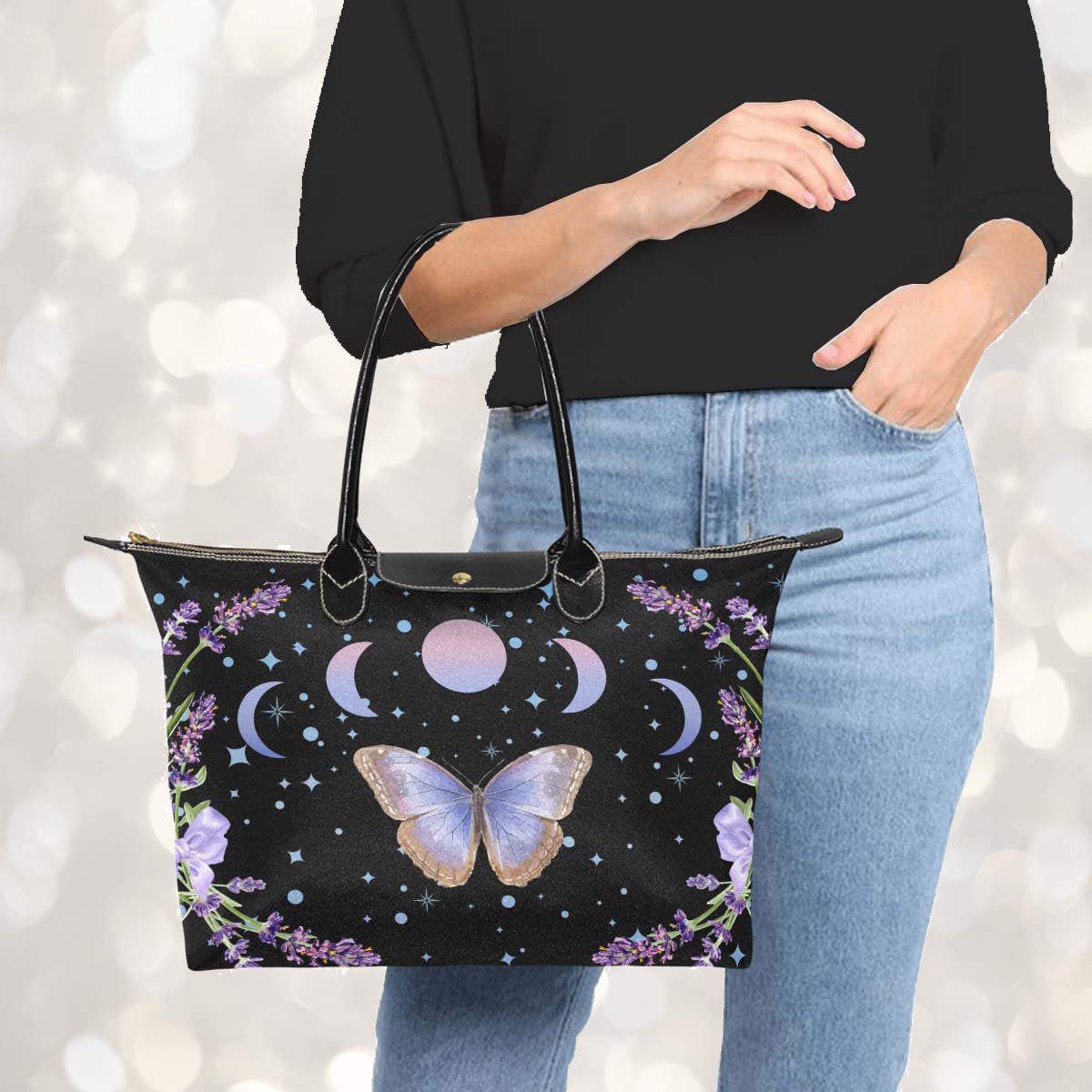 Witchy Purple Butterfly and Moon Phases Classic 15 Inch Handbag