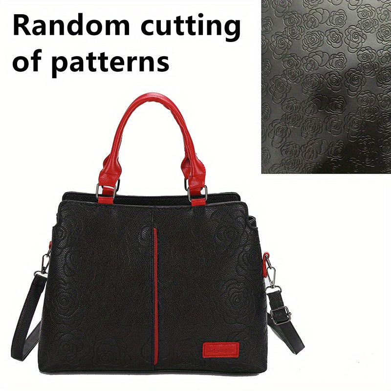 Women's Trendy Faux Leather Shoulder Bag - Letter Embossed Handbag with Double Handle - 8.4*8.6*3.5 Inch