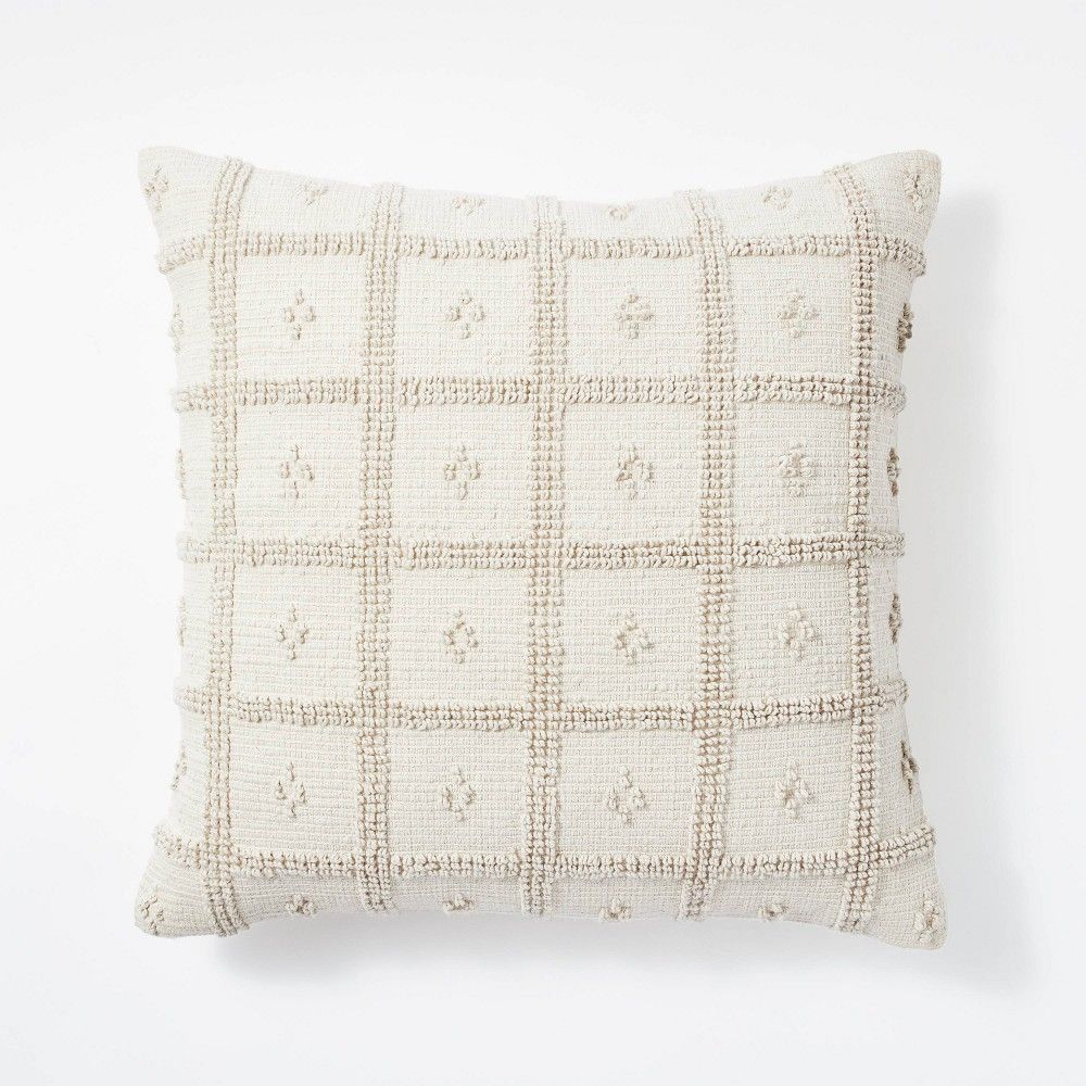 Woven Cotton Tufted Square Throw Pillow Cream - Threshold
