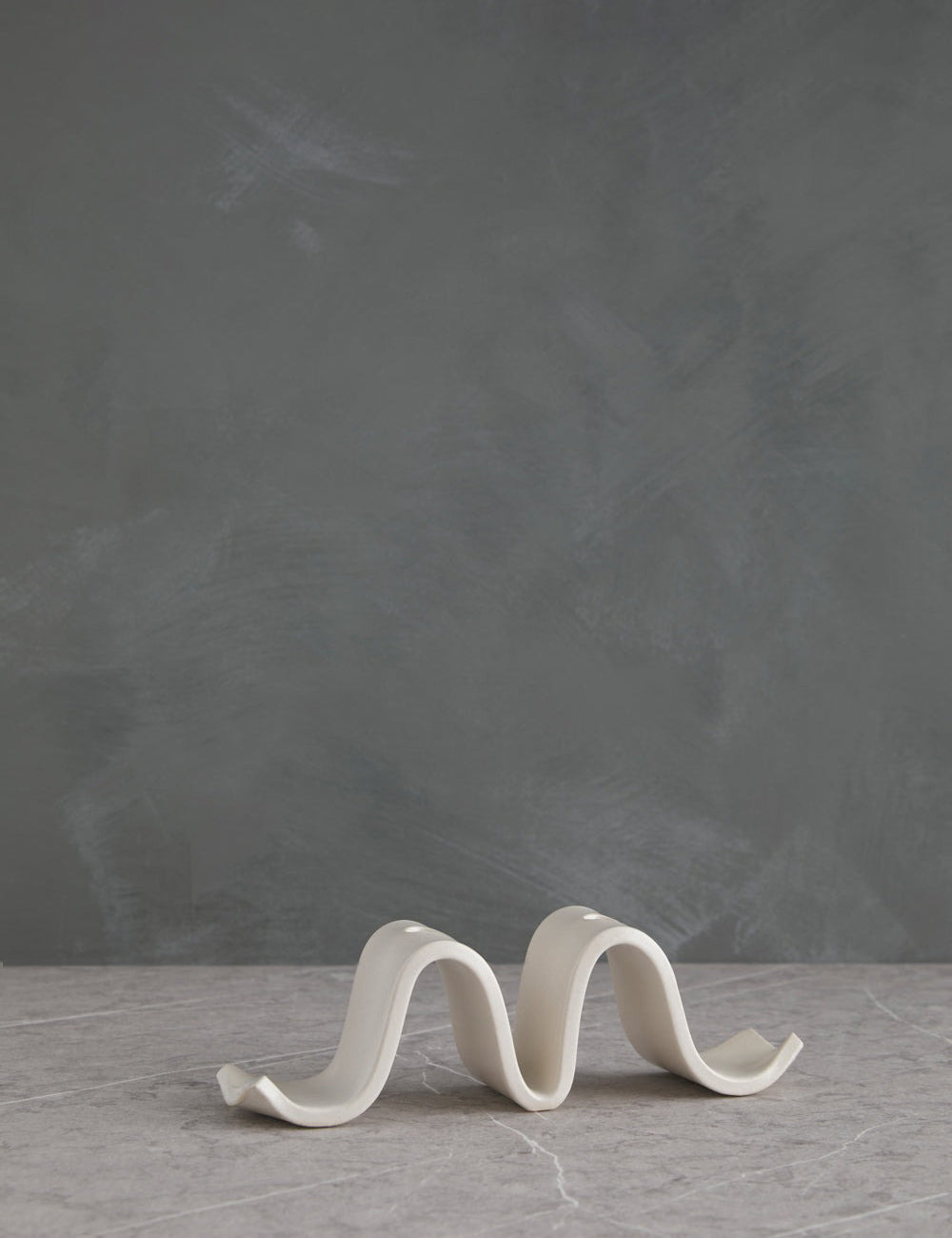 SIN is a Brooklyn-based brand that offers beautiful, handmade pieces designed with intention. An undulating silhouette brings an organic flair to this stoneware candle holder. With space for two taper candles, the ribbon-like design offers an earthy elegance for a minimalist tablescape.