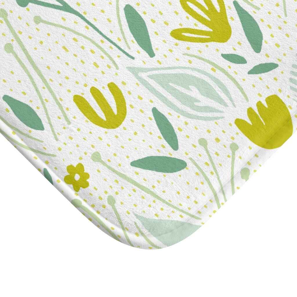 The high-definition modern floral design on this absorbent, spongy bathmat exactly matches our Yellow and Green Floral Shower Curtain design, to complete your bathroom's finished look.