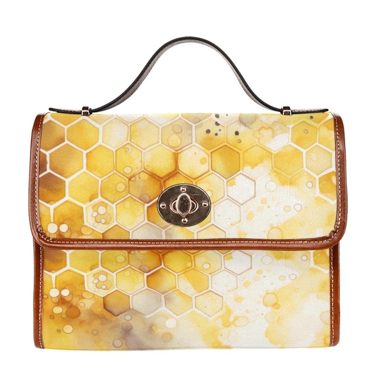 Yellow Honeycomb Canvas Satchel Bag Purse