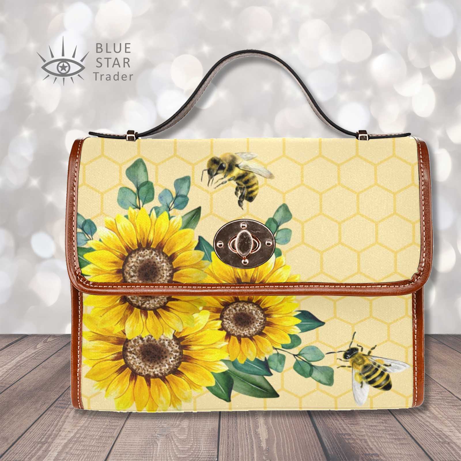 Yellow Sunflowers and Honey Bee Canvas Satchel Handbag Purse Cross Body Bag