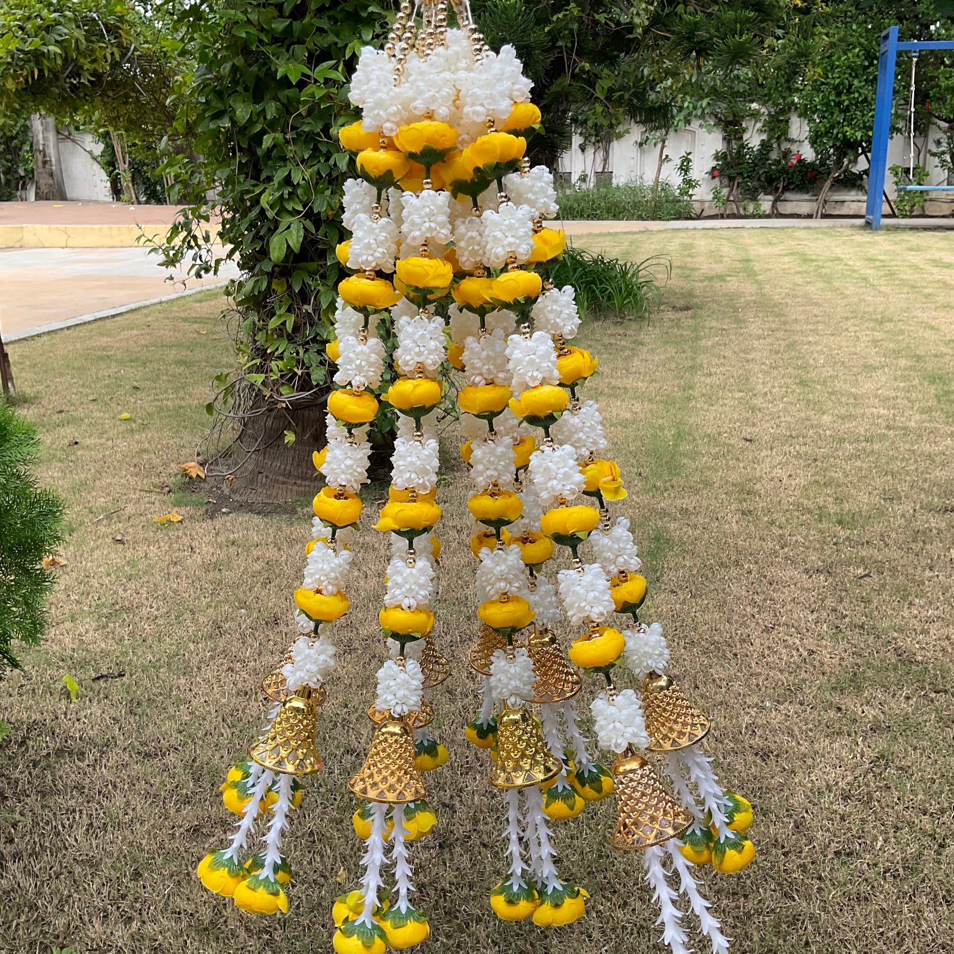 Enhance your festive decor, home pooja with these beautiful Artificial Flower Garlands Vine with bells. It adds colourful festive vibes for home pooja, housewarming or office events.